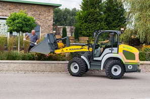 Les chargeuses sur pneus KRAMER sont compactes et maniables. Leurs dimensions les prédestinent aux hauteurs de franchissement réduites et aux passages étroits, idéal sur des terrains où elles font leurs preuves comme les chantiers de construction en centre-ville.